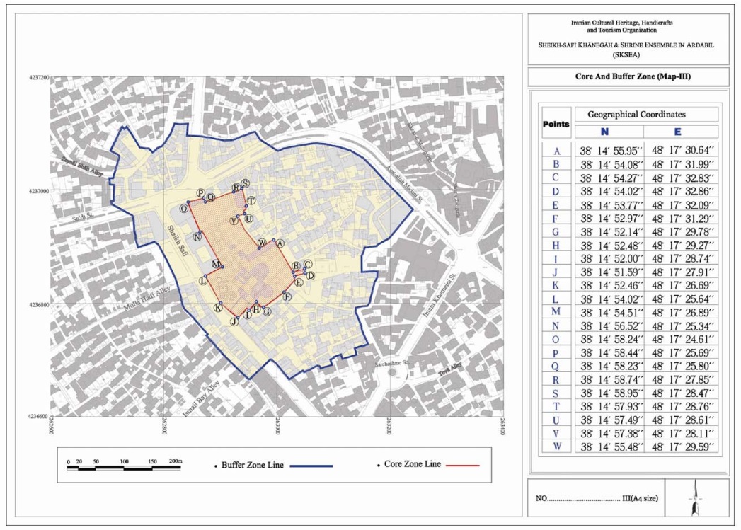 Sơ đồ phạm vi Di sản Quần thể Tu viện và Đền thờ Sheikh Safi al-din tại Ardabil, Iran