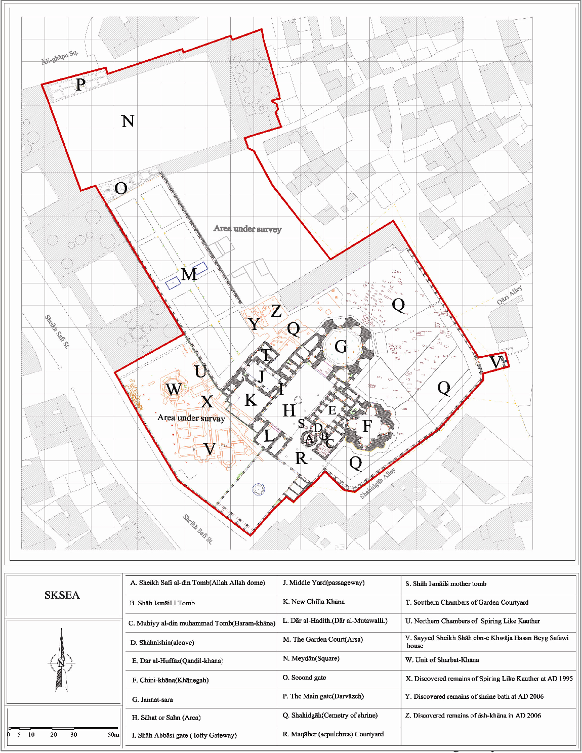Quần thể Tu viện và Đền thờ Sheikh Safi al-din được xây dựng như một thành phố thu nhỏ với chợ, nhà tắm công cộng, quảng trường, các công trình tôn giáo, nhà ở và văn phòng.